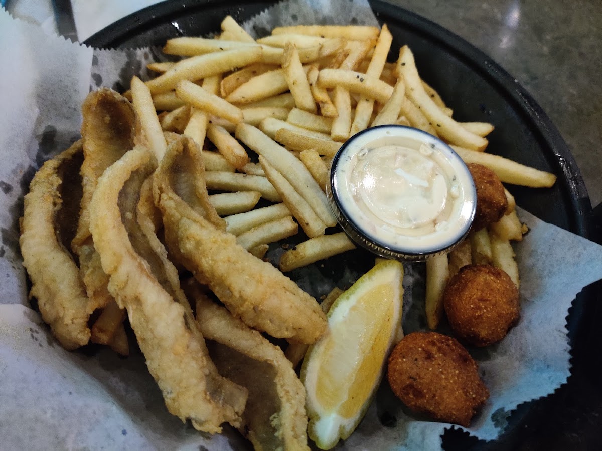 There was six of us on a busy Friday night at 6:15 and it was our first time. We were greeted and seated promptly with Kathy being our fabulous waitress. I don't know the yong man's name busing the tables, but he was so good my husband had to tip him also. There was also a one man band singing and playing a guitar and we could still hear each other. All the food we ordered from the pretzel appetizers to the French onion soup, to the Mahi tacos, fish and chips all the way to pizza was off the hook good and served hot. We live 40 minutes from this lovely restaurant and all of us said we would go back. Can't wait to try it this summer. We highly recommend it.